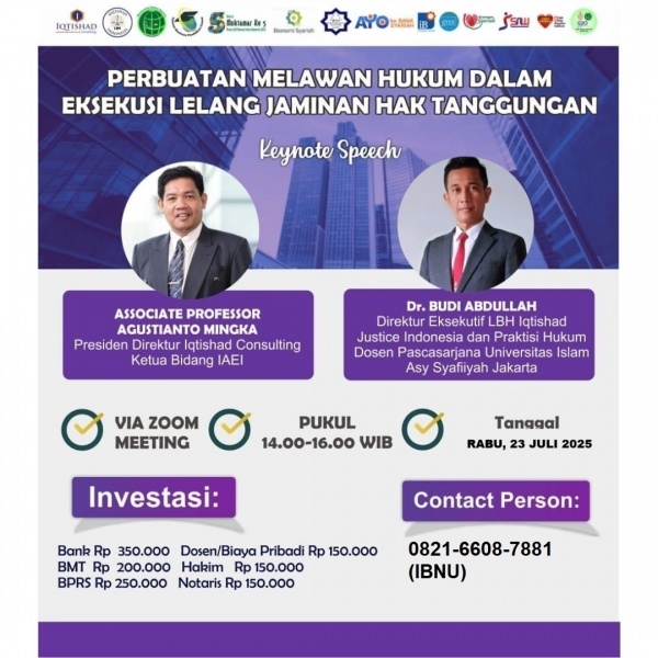 Berdasarkan realita tersebut Iqtishad tertarik untuk membahas segala problematika Perbuatan Melawan Hukum Eksekusi Lelang Jaminan Hak Tanggungan tersebut. Banyak pihak yangh perlu mengetahui problematika ini, tidak saja notaris, advolat, pengacara, law firm, tetapi juga bank syariah, LKS, bahkan Dosen.